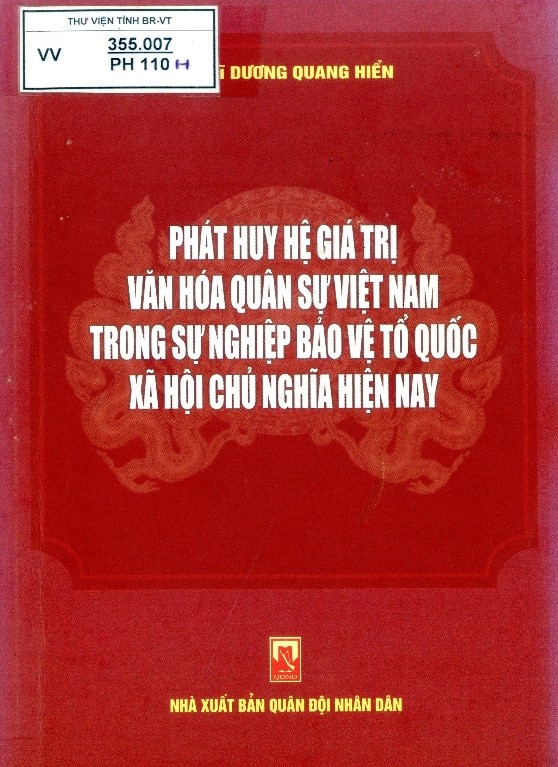 Phát huy hệ giá trị văn hóa quân sự Việt Nam trong sự nghiệp bảo vệ Tổ quốc xã hội chủ nghĩa hiện nay Sách chuyên khảo .- Quân đội nhân dân : Hà Nội ; 2012 .- 255 tr. 21 cm